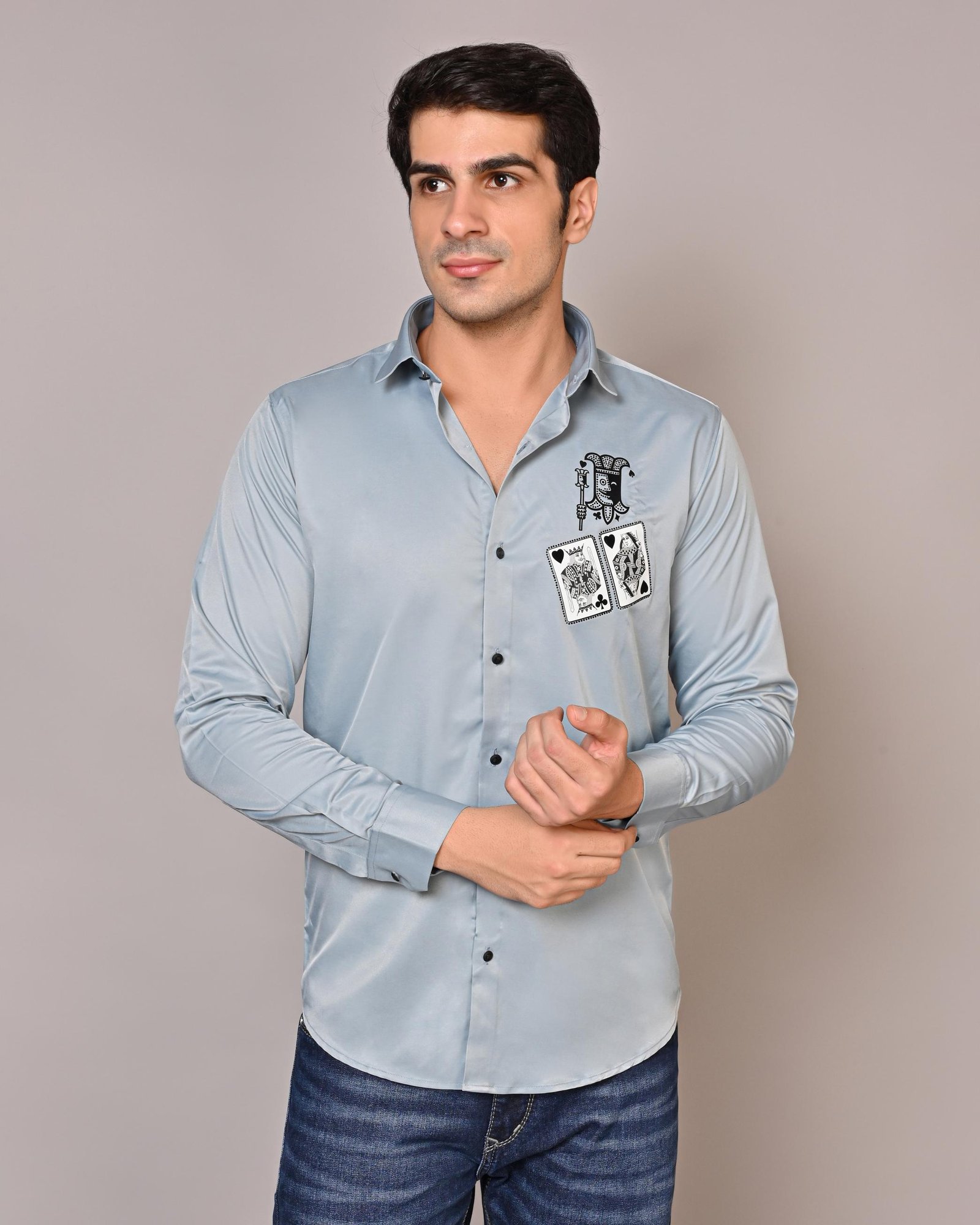 .Crafted from a lycra blend fabric, the white apple Men’s Regular Shirt offers enhanced comfort levels. Known for its stretchability, the fabric allows this shirt to conform to your body's shape while still providing freedom of movement. This feature is especially suitable for your active lifestyle, allowing you to move around comfortably throughout the day. In addition to its stretchability, the lycra blend fabric is also highly breathable. This feature allows air to circulate freely between this shirt and the skin, keeping you cool and comfortable even in hot/Samer weather S015
