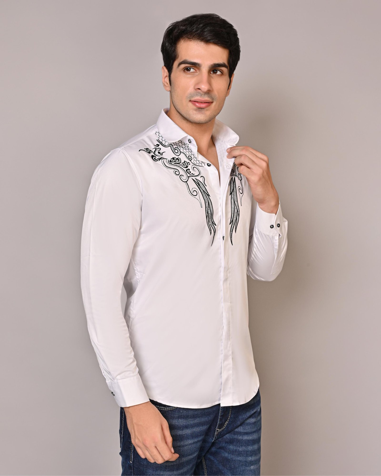 Crafted from a lycra blend fabric, the white apple Men’s Regular Shirt offers enhanced comfort levels. Known for its stretchability, the fabric allows this shirt to conform to your body's shape while still providing freedom of movement.