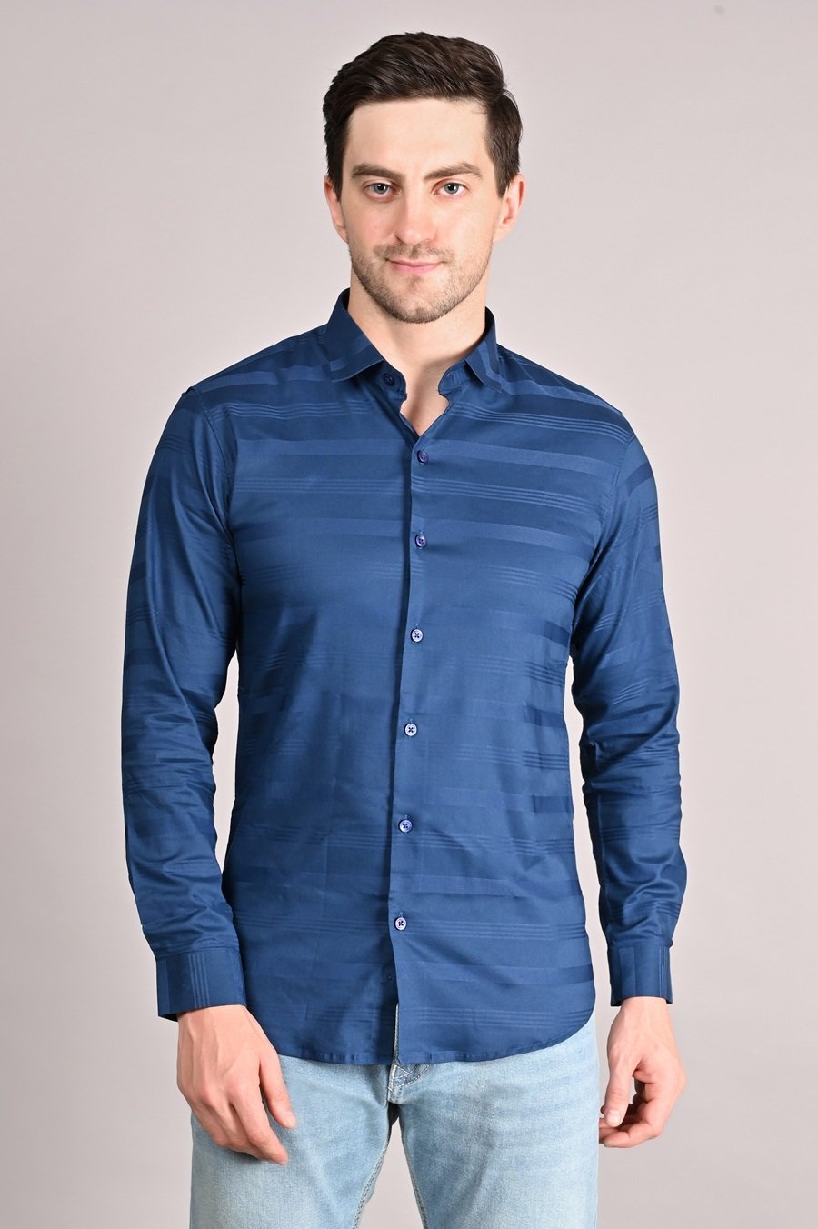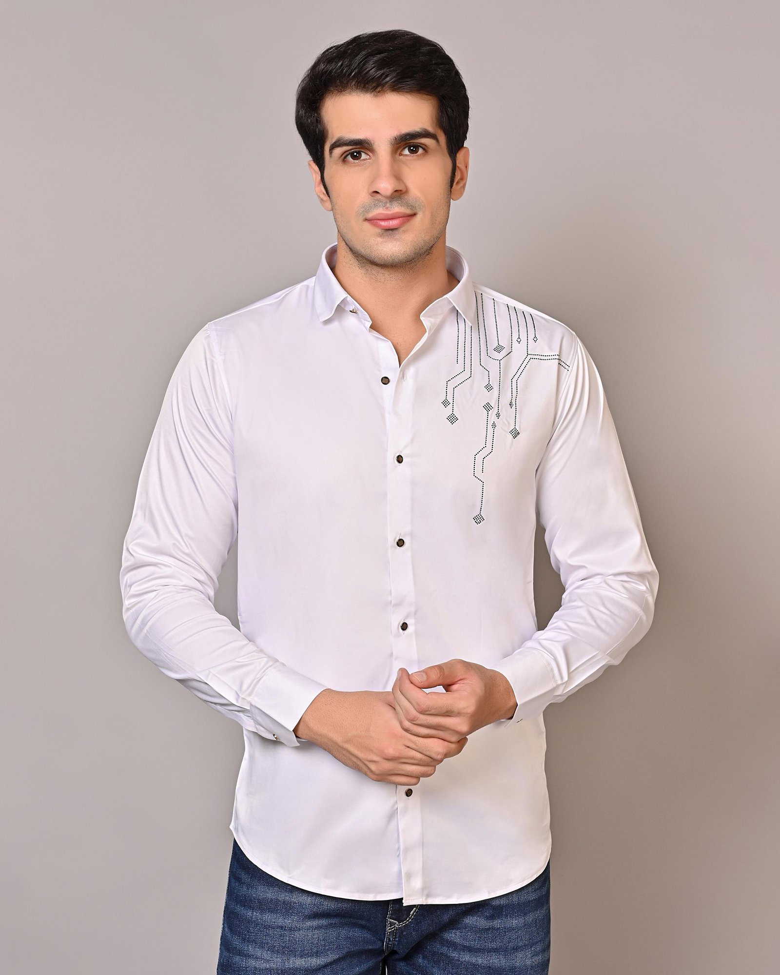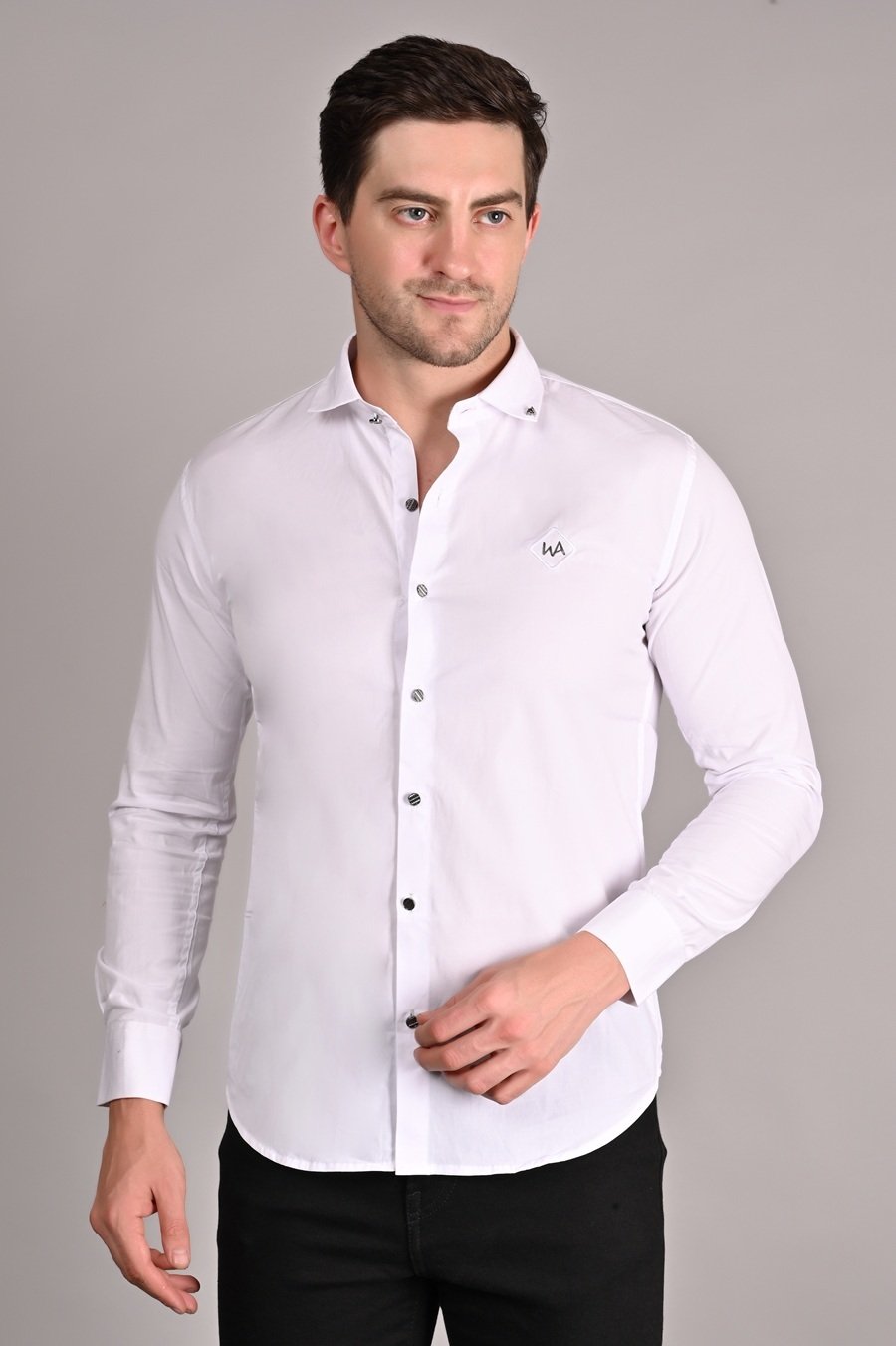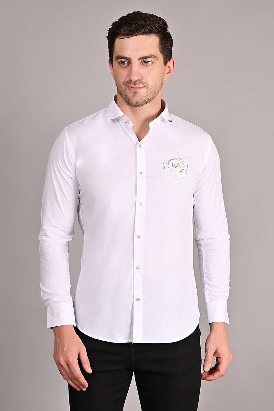 Shirt .Crafted from a lycra blend fabric, the white apple Men’s Regular Shirt offers enhanced comfort levels. Known for its stretchability, the fabric allows this shirt to conform to your body's shape while still providing freedom of movement