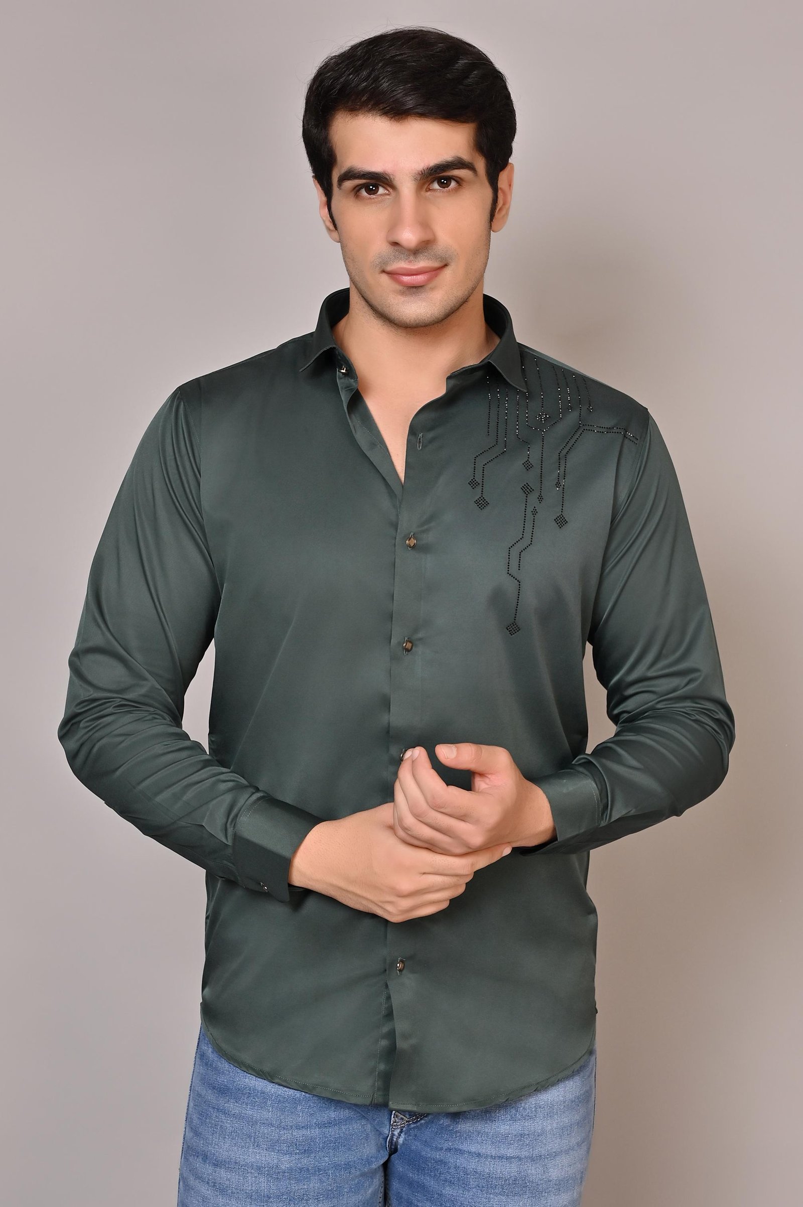 Elevate your formal look with this Men's Regular Fit Solid Shirt, featuring a classic spread collar—perfect for weddings, parties, and special occasions.