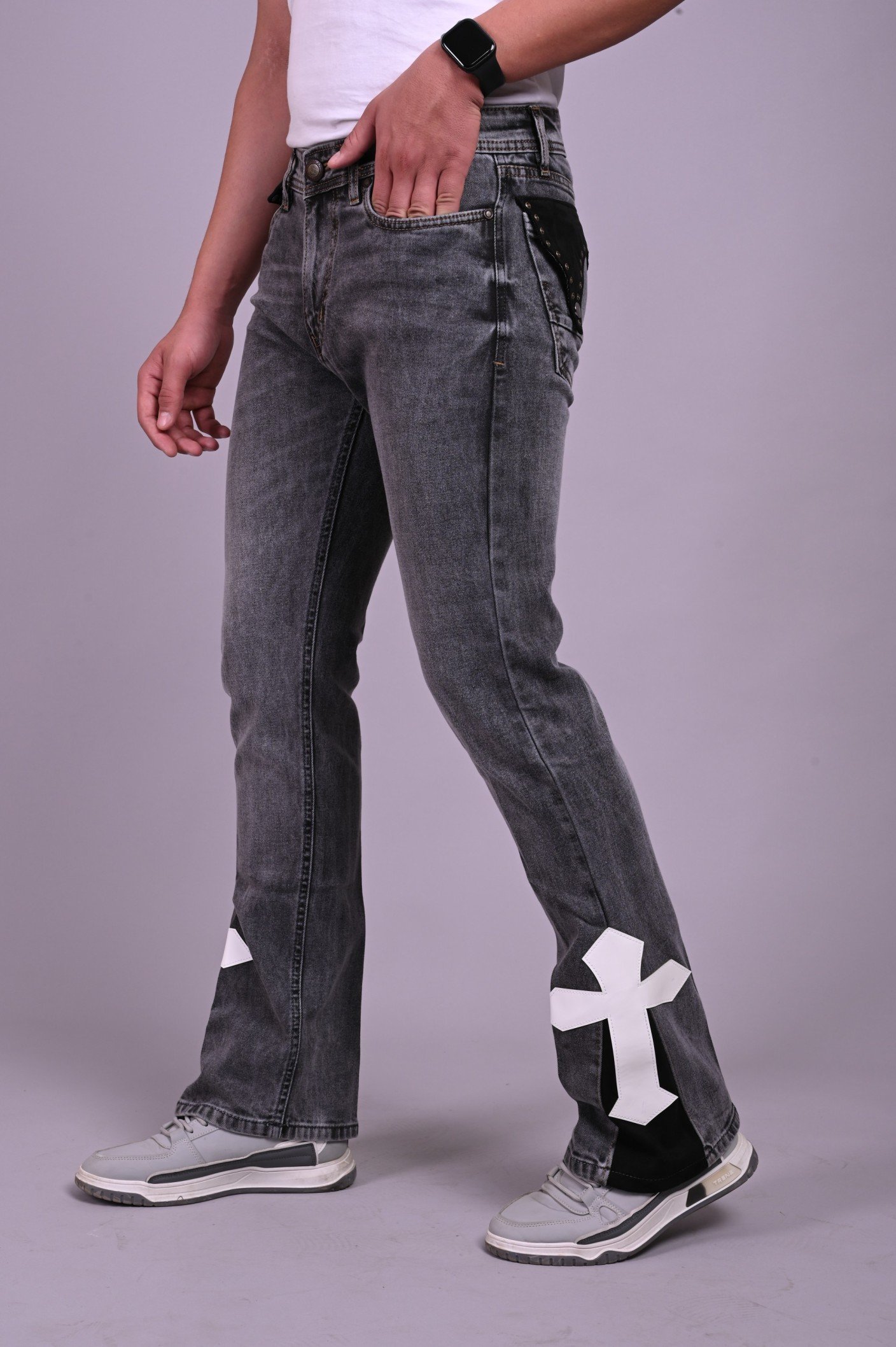 Upgrade your casual style with these White Apple JNS men’s jeans, featuring a bold distressed wash and modern slim-fit design. Crafted from durable denim for all-day comfort, they offer a unique faded pattern that stands out. Perfect for pairing with sneakers and tees for an effortlessly stylish look.